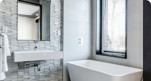 Toilets, counters, cabinets, bathtubs, showers, and more.